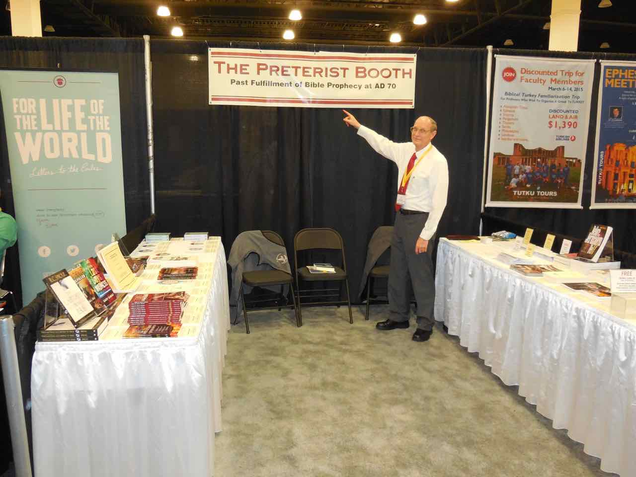 Attendees at this annual conference are key opinion leaders in conservative Christianity – theologians, seminary professors, writers, publishers, pastors, ministry heads, and media personalities in evangelical circles. We very much appreciate those dear fellow preterists who volunteer at their own expense to work in the booth and interact with the hundreds of attendees who drop by: Edmund Lee, Mathew Dryden, Don West, Parker Voll, Dave & Barb Johnston, and Dave & Jacki Miller.